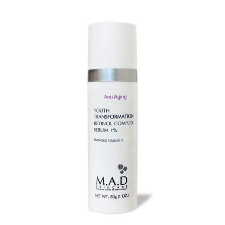 {"id":9211475722477,"title":"Youth Transformation Retinol Complex Serum 2% – M.A.D Skincare Advanced","handle":"youth-transformation-retinol-complex-serum-2-m-a-d-skincare-advanced","description":"\u003cdiv\u003e\n\u003cp\u003eYouth Transformation Retinol Complex Serum 2% from M.A.D Skincare Advanced is a professional-strength nightly treatment designed for experienced retinol users seeking finer texture, more even tone, and a luminous complexion. Encapsulated retinol delivers a controlled release to minimize irritation as your skin renews.\u003c\/p\u003e \u003ch3\u003eFeatures\u003c\/h3\u003e\n\u003cul\u003e \u003cli\u003e\n\u003cb\u003eActive Concentration:\u003c\/b\u003e 2% retinol with encapsulated delivery for controlled release and reduced irritation\u003c\/li\u003e \u003cli\u003e\n\u003cb\u003eTexture:\u003c\/b\u003e Lightweight, fast-absorbing serum that layers smoothly under moisturizers\u003c\/li\u003e \u003cli\u003e\n\u003cb\u003ePackaging:\u003c\/b\u003e 1 fl oz (30 mL) amber glass dropper bottle protects potency and enables precise dosing\u003c\/li\u003e \u003cli\u003e\n\u003cb\u003eFormulation:\u003c\/b\u003e Fragrance-free and designed to layer into professional-grade regimens\u003c\/li\u003e \u003cli\u003e\n\u003cb\u003eHydration \u0026amp; Skin Support:\u003c\/b\u003e Hydrating base helps maintain the skin barrier and reduce dryness often associated with retinol\u003c\/li\u003e \u003cli\u003e\n\u003cb\u003eSkin Type \u0026amp; Use:\u003c\/b\u003e Suitable for normal to oily, combination skin; designed for experienced retinol users\u003c\/li\u003e \u003cli\u003e\n\u003cb\u003eUsage \u0026amp; Guidance:\u003c\/b\u003e Evening application; begin 2–3x weekly, then increase as tolerance builds; avoid harsh actives and strong physical scrubs; always use SPF daily\u003c\/li\u003e \u003cli\u003e\n\u003cb\u003eDimensions:\u003c\/b\u003e Bottle approximately 1.5 x 1.5 x 4.25 inches\u003c\/li\u003e\n\u003c\/ul\u003e \u003ch3\u003eBenefits\u003c\/h3\u003e\n\u003cul\u003e \u003cli\u003eTargets visible signs of aging by reducing the look of fine lines and improving skin texture\u003c\/li\u003e \u003cli\u003eRefines pores and contributes to a more even, luminous complexion\u003c\/li\u003e \u003cli\u003eSupports hydration and barrier health while delivering retinol benefits\u003c\/li\u003e \u003cli\u003eEasy to integrate into a professional at-home skincare routine with stable, reliable nightly performance\u003c\/li\u003e \u003cli\u003e fragrance-free formulation minimizes irritation and suits sensitive regimens when used as directed\u003c\/li\u003e \u003cli\u003eProfessional-grade results with packaging designed for stability, easy application, and consistent nightly use\u003c\/li\u003e\n\u003c\/ul\u003e \u003cbr\u003e \u003ctable width=\"100%\"\u003e\n\u003ctbody\u003e \u003ctr\u003e \u003ctd\u003e\u003cstrong\u003eActive Concentration\u003c\/strong\u003e\u003c\/td\u003e \u003ctd\u003eRetinol 2% (encapsulated delivery system)\u003c\/td\u003e \u003c\/tr\u003e \u003ctr\u003e \u003ctd\u003e\u003cstrong\u003eVolume\u003c\/strong\u003e\u003c\/td\u003e \u003ctd\u003e1 fl oz (30 mL)\u003c\/td\u003e \u003c\/tr\u003e \u003ctr\u003e \u003ctd\u003e\u003cstrong\u003eBottle\u003c\/strong\u003e\u003c\/td\u003e \u003ctd\u003eAmber glass dropper bottle for UV protection and precise dosing\u003c\/td\u003e \u003c\/tr\u003e \u003ctr\u003e \u003ctd\u003e\u003cstrong\u003eTexture\u003c\/strong\u003e\u003c\/td\u003e \u003ctd\u003eLightweight, fast-absorbing serum\u003c\/td\u003e \u003c\/tr\u003e \u003ctr\u003e \u003ctd\u003e\u003cstrong\u003eRecommended Use\u003c\/strong\u003e\u003c\/td\u003e \u003ctd\u003eEvening application; begin 2–3x weekly, increase as tolerated\u003c\/td\u003e \u003c\/tr\u003e \u003ctr\u003e \u003ctd\u003e\u003cstrong\u003eDirections\u003c\/strong\u003e\u003c\/td\u003e \u003ctd\u003eApply a pea-sized amount to dry, cleansed skin; follow with moisturizer; use sunscreen daily\u003c\/td\u003e \u003c\/tr\u003e \u003ctr\u003e \u003ctd\u003e\u003cstrong\u003eSkin Type\u003c\/strong\u003e\u003c\/td\u003e \u003ctd\u003eNormal to oily, combination; for experienced retinol users (introduce gradually)\u003c\/td\u003e \u003c\/tr\u003e \u003ctr\u003e \u003ctd\u003e\u003cstrong\u003ePackaging Dimensions\u003c\/strong\u003e\u003c\/td\u003e \u003ctd\u003eBottle approx. 1.5 x 1.5 x 4.25 inches (L x W x H)\u003c\/td\u003e \u003c\/tr\u003e \u003c\/tbody\u003e\n\u003c\/table\u003e\n\u003c\/div\u003e","published_at":"2025-11-28T08:22:00-08:00","created_at":"2025-11-28T08:21:59-08:00","vendor":"M.A.D Skincare","type":"serum","tags":["1 fl oz retinol","anti-aging serum","fine lines serum","night retinol treatment","retinol 2% serum","skin texture treatment","vitamin A serum"],"price":6300,"price_min":6300,"price_max":6300,"available":true,"price_varies":false,"compare_at_price":null,"compare_at_price_min":0,"compare_at_price_max":0,"compare_at_price_varies":false,"variants":[{"id":49076775092461,"title":"Default Title","option1":"Default Title","option2":null,"option3":null,"sku":null,"requires_shipping":true,"taxable":true,"featured_image":null,"available":true,"name":"Youth Transformation Retinol Complex Serum 2% – M.A.D Skincare Advanced","public_title":null,"options":["Default Title"],"price":6300,"weight":170,"compare_at_price":null,"inventory_quantity":0,"inventory_management":null,"inventory_policy":"continue","barcode":null,"requires_selling_plan":false,"selling_plan_allocations":[]}],"images":["\/\/skincarebysuzie.com\/cdn\/shop\/files\/Circadia_Transformation_retinol.jpg?v=1764348013"],"featured_image":"\/\/skincarebysuzie.com\/cdn\/shop\/files\/Circadia_Transformation_retinol.jpg?v=1764348013","options":["Title"],"media":[{"alt":null,"id":37312018284781,"position":1,"preview_image":{"aspect_ratio":1.0,"height":750,"width":750,"src":"\/\/skincarebysuzie.com\/cdn\/shop\/files\/Circadia_Transformation_retinol.jpg?v=1764348013"},"aspect_ratio":1.0,"height":750,"media_type":"image","src":"\/\