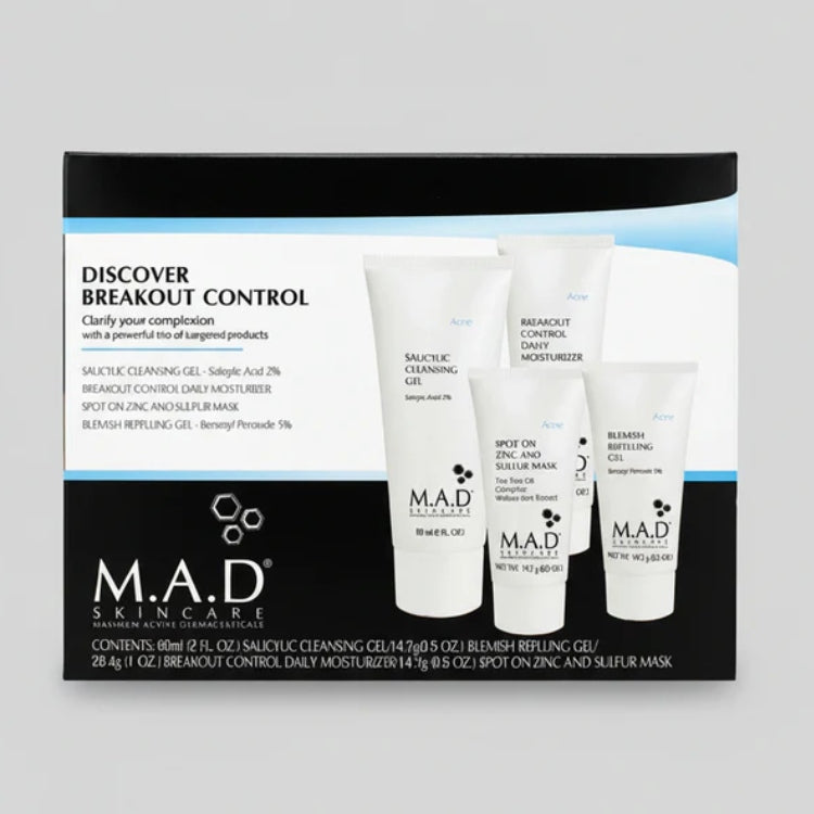 {"id":9211425784045,"title":"M.A.D. Skincare Breakout Control Acne Kit – Cleanse, Treat, Moisturize","handle":"m-a-d-skincare-breakout-control-acne-kit-cleanse-treat-moisturize","description":"\u003cdiv\u003e\n\u003cp\u003eM.A.D Skincare Breakout Control Acne Kit is a complete, travel-friendly routine designed for oily, combination, and acne-prone skin. It cleanses, treats, and moisturizes—helping you achieve clear, balanced skin without over-drying.\u003c\/p\u003e \u003ch3\u003eFeatures\u003c\/h3\u003e\n\u003cul\u003e \u003cli\u003e\n\u003cb\u003eSalicylic Cleansing Gel\u003c\/b\u003e (2 fl oz) — exfoliates deep inside pores to remove excess oil and debris, helping prevent new breakouts.\u003c\/li\u003e \u003cli\u003e\n\u003cb\u003eBlemish Repelling Gel\u003c\/b\u003e (0.5 oz) — quick-acting spot treatment that targets active acne, reducing redness and swelling during your day.\u003c\/li\u003e \u003cli\u003e\n\u003cb\u003eBreakout Control Daily Moisturizer\u003c\/b\u003e (1 oz) — lightweight, non-greasy hydration that regulates oil production and supports skin barrier health.\u003c\/li\u003e \u003cli\u003e\n\u003cb\u003eSpot-On Zinc \u0026amp; Sulfur Mask\u003c\/b\u003e (0.5 oz) — draws out impurities, reduces inflammation, and refines skin texture in minutes.\u003c\/li\u003e \u003cli\u003e\n\u003cb\u003eTravel-ready packaging\u003c\/b\u003e — boxed travel kit with individually labeled minis for easy daily use at home or on the go.\u003c\/li\u003e \u003cli\u003e\n\u003cb\u003eKey actives\u003c\/b\u003e — Salicylic Acid, Zinc, and Sulfur work together to exfoliate, calm inflammation, and reduce blemishes.\u003c\/li\u003e\n\u003c\/ul\u003e \u003ch3\u003eBenefits\u003c\/h3\u003e\n\u003cul\u003e \u003cli\u003eDeep pore cleansing and exfoliation to keep pores clear of oil and buildup that cause breakouts.\u003c\/li\u003e \u003cli\u003eTargeted spot treatment speeds healing and minimizes the appearance of active blemishes.\u003c\/li\u003e \u003cli\u003eOil balance with lightweight hydration so skin stays fresh without clogging pores.\u003c\/li\u003e \u003cli\u003eReduced redness and inflammation for a smoother, more even complexion.\u003c\/li\u003e \u003cli\u003eImproved skin texture over time, with fewer breakouts and a clearer, more radiant look.\u003c\/li\u003e \u003cli\u003eIdeal for daily home use or as a starter kit for clients, resale, or travel.\u003c\/li\u003e \u003cli\u003eSuitable for oily, combination, and acne-prone skin, including hormonal or cystic breakouts.\u003c\/li\u003e\n\u003c\/ul\u003e \u003cbr\u003e \u003ctable width=\"100%\"\u003e\n\u003ctbody\u003e\n\u003ctr\u003e\n\u003ctd\u003e\u003cstrong\u003eProduct Type\u003c\/strong\u003e\u003c\/td\u003e\n\u003ctd\u003eComplete acne treatment starter kit (travel size)\u003c\/td\u003e\n\u003c\/tr\u003e\n\u003ctr\u003e\n\u003ctd\u003e\u003cstrong\u003eKit Includes\u003c\/strong\u003e\u003c\/td\u003e\n\u003ctd\u003eSalicylic Cleansing Gel (2 fl. oz.), Blemish Repelling Gel (0.5 oz.), Breakout Control Daily Moisturizer (1 oz.), Spot On Zinc \u0026amp; Sulfur Mask (0.5 oz.)\u003c\/td\u003e\n\u003c\/tr\u003e\n\u003ctr\u003e\n\u003ctd\u003e\u003cstrong\u003eKey Actives\u003c\/strong\u003e\u003c\/td\u003e\n\u003ctd\u003eSalicylic Acid, Zinc, Sulfur — combined for pore exfoliation, anti-inflammatory action, and blemish reduction\u003c\/td\u003e\n\u003c\/tr\u003e\n\u003ctr\u003e\n\u003ctd\u003e\u003cstrong\u003eSkin Type\u003c\/strong\u003e\u003c\/td\u003e\n\u003ctd\u003eOily, combination, and acne-prone skin\u003c\/td\u003e\n\u003c\/tr\u003e\n\u003ctr\u003e\n\u003ctd\u003e\u003cstrong\u003ePrimary Benefits\u003c\/strong\u003e\u003c\/td\u003e\n\u003ctd\u003eDeep pore exfoliation, spot reduction, oil balance, redness reduction, improved skin texture\u003c\/td\u003e\n\u003c\/tr\u003e\n\u003ctr\u003e\n\u003ctd\u003e\u003cstrong\u003eUsage\u003c\/strong\u003e\u003c\/td\u003e\n\u003ctd\u003eDaily: cleanse, apply moisturizer; spot-treat with blemish gel; mask 1–2x weekly or as needed\u003c\/td\u003e\n\u003c\/tr\u003e\n\u003ctr\u003e\n\u003ctd\u003e\u003cstrong\u003ePackaging\u003c\/strong\u003e\u003c\/td\u003e\n\u003ctd\u003eBoxed travel kit with individually labeled mini tubes for professional or retail sale\u003c\/td\u003e\n\u003c\/tr\u003e\n\u003c\/tbody\u003e\n\u003c\/table\u003e\n\u003c\/div\u003e","published_at":"2025-11-28T03:48:33-08:00","created_at":"2025-11-28T03:48:31-08:00","vendor":"M.A.D. Skincare","type":"Complete Bundle","tags":["acne treatment starter kit","blemish repelling gel","Breakout Control kit","esthetician acne kit","oil control moisturizer","salicylic cleanser","travel acne kit","zinc sulfur mask"],"price":4100,"price_min":4100,"price_max":4100,"available":true,"price_varies":false,"compare_at_price":null,"compare_at_price_min":0,"compare_at_price_max":0,"compare_at_price_varies":false,"variants":[{"id":49076398686445,"title":"Default Title","option1":"Default Title","option2":null,"option3":null,"sku":"377001","requires_shipping":true,"taxable":true,"featured_image":null,"available":true,"name":"M.A.D. Skincare Breakout Control Acne Kit – Cleanse, Treat, Moisturize","public_title":null,"options":["Default Title"],"price":4100,"weight":0,"compare_at_price":null,"inventory_quantity":0,"inventory_management":null,"inventory_policy":"continue","barcode":null,"requires_selling_plan":false,"selling_plan_allocations":[]}],"images":["\/\/skincarebysuzie.com\/cdn\/shop\/files\/mad_6.jpg?v=1764333055"],"featured_image":"\/\/skincarebysuzie.com\/cdn\/shop\/files\/mad_6.jpg?v=1764333055","options":["Title"],"media":[{"alt":null,"id":37311564873965,"position":1,"preview_image":{"aspect_ratio":1.0,"height":750,"width":750,"src":"\/\/skincarebysuzie.com\/cdn\/shop\/files\/mad_6.jpg?v=1764333055"},"aspect_ratio":1.0,"height":750,"media_type":"image","src":"\/\/skincarebysuzie.com\/cdn\/shop\/files\/mad_6.jpg?v=1764333055","width":750}],"requires_selling_plan":false,"selling_plan_groups":[],"content":"\u003cdiv
